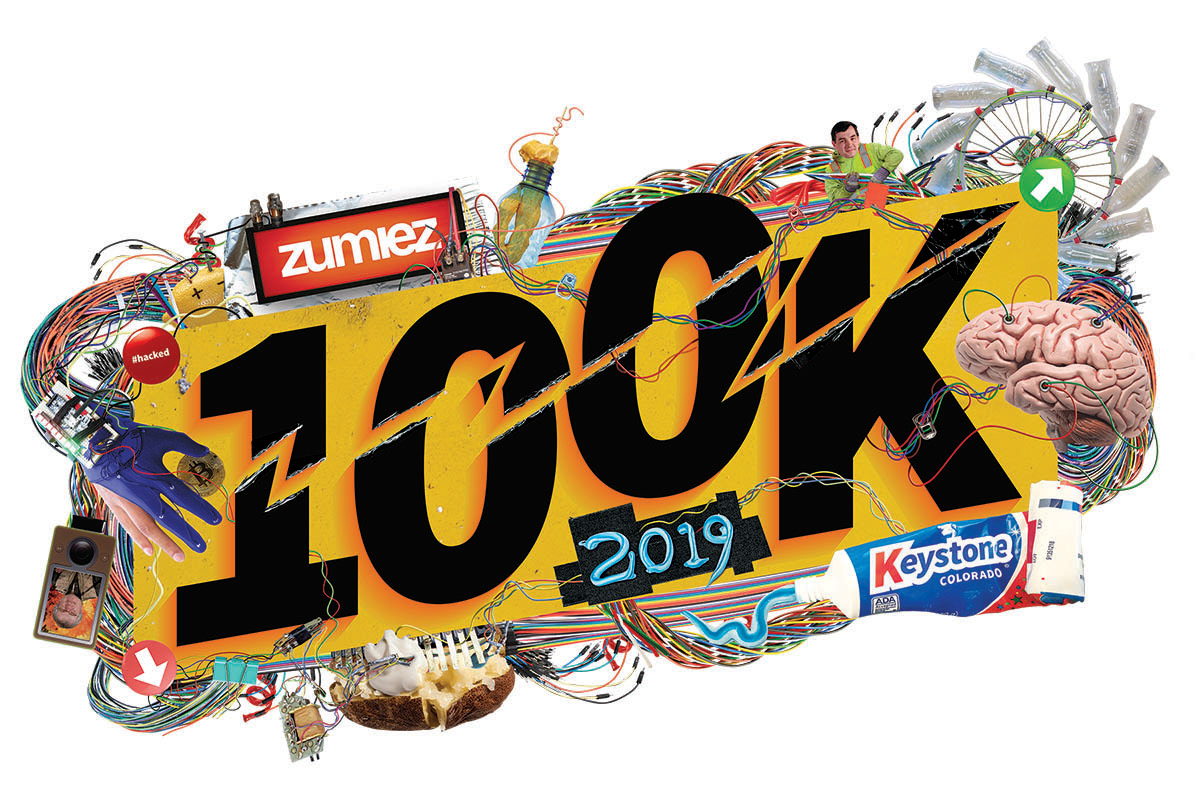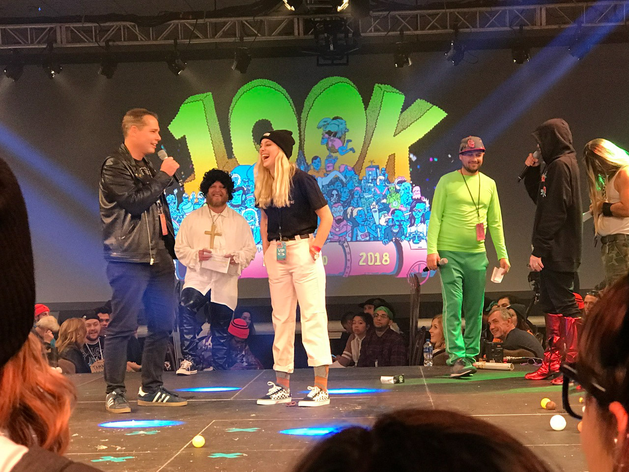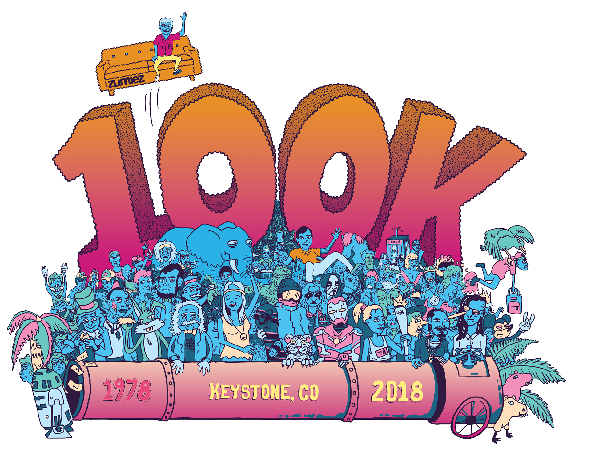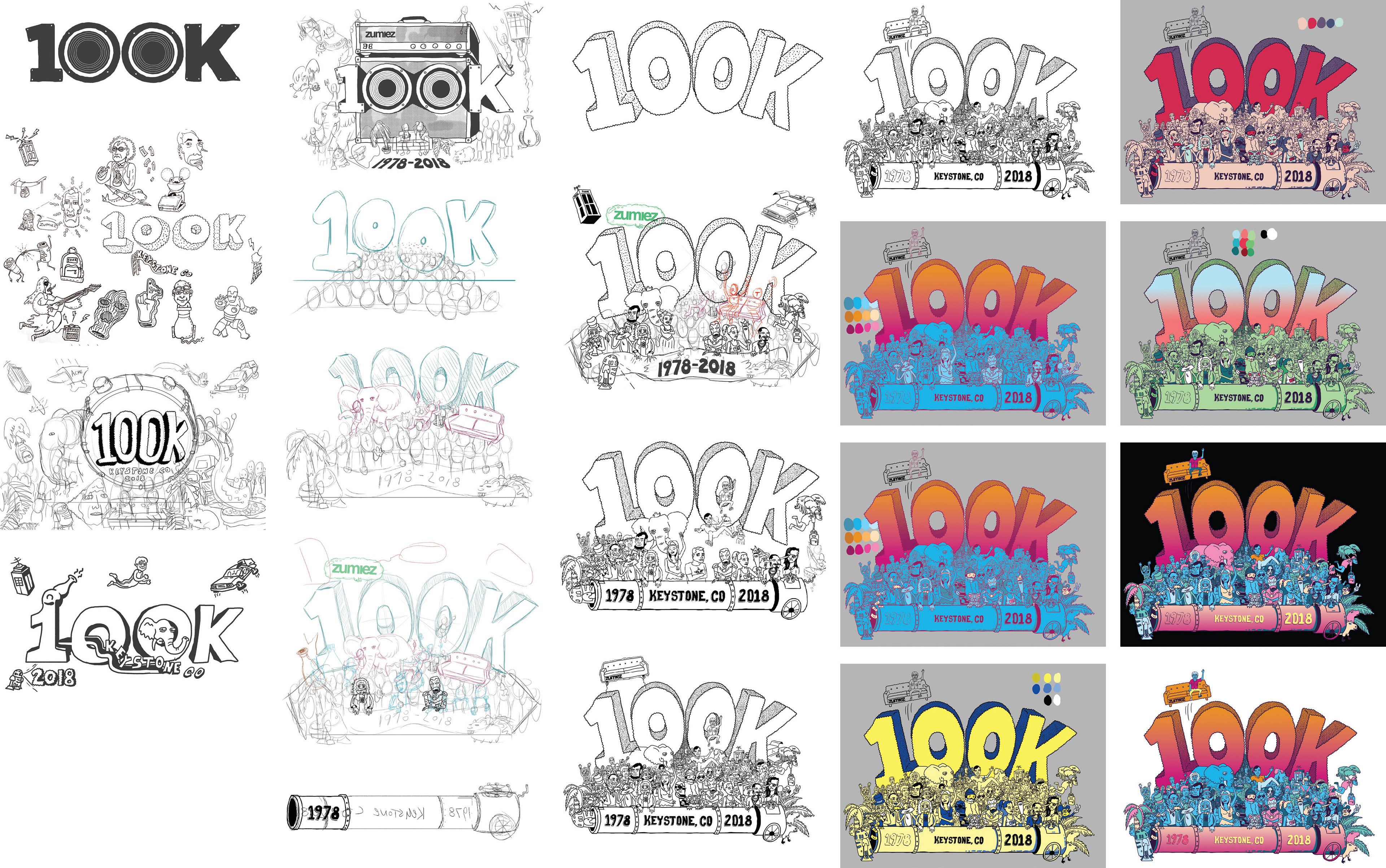 This logo features cameos from many memorable 100K moments throughout the ages. If you recognize someone in there they likely performed or were involved at a previous event.
